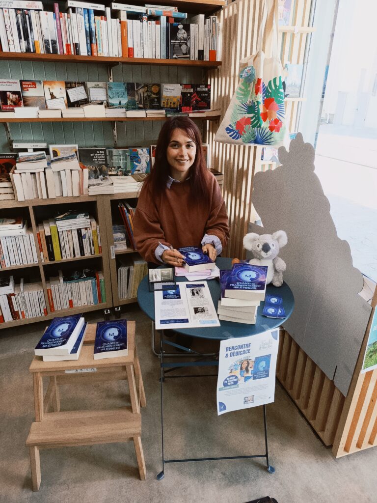 Quand se fragmentèrent les étoiles est son premier roman, dont elle a posé les premiers mots en 2014. Profondément nourrie par ses épreuves de vie, l’histoire de Lady Violet s’est construite à travers les aléas des années qui se sont écoulées depuis. Elle a choisi l’autoédition pour le publier en avril 2025.